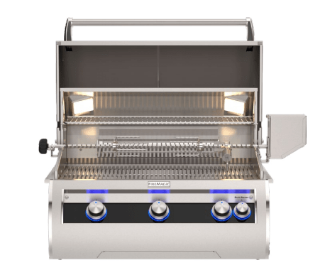 When only the best will do, our flagship Fire Magic® Echelon Diamond combines the ultimate in performance, beauty and innovation. With sleek lines highlighted by a modern black glass control panel, choose analog or digital touchscreen operation with blue tooth remote capability. Cast stainless steel burners power an innovative heat distribution system topped with patented Diamond Sear cooking grids to truly elevate the outdoor cooking experience. The Echelon Diamond defines luxury in grilling.